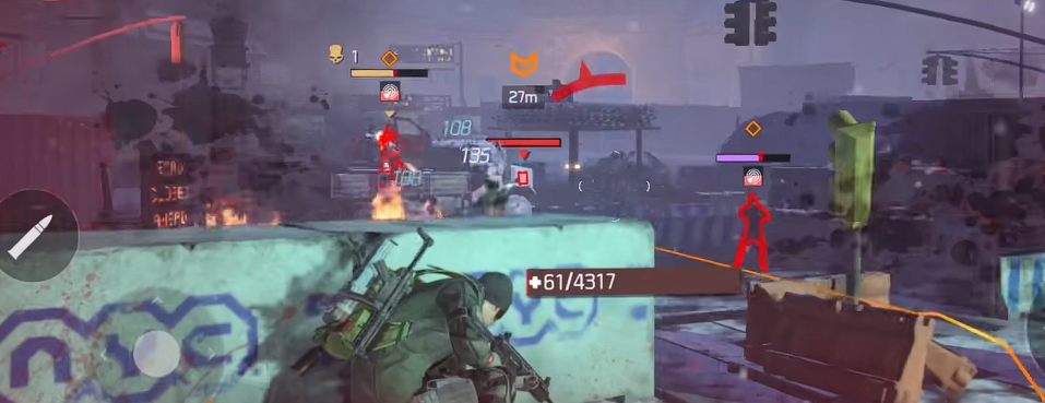 而瞄准敌人也有一定的技巧,玩家们可以在远程观察敌人的射击数量,如果对面敌人长时间进行射击的话,基本上是需要露头的,这时候玩家们对着红色血量的敌人射击就可以了,同时找好一个掩体就能保证自己的血量健康,