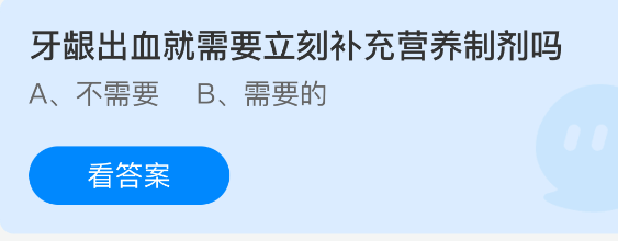 牙龈出血就需要立刻补充营养制剂吗?支付宝小鸡课堂开课啦!每天花一分钟正确答题就能获得180饲料,喂喂小鸡就能贡献爱心啦!轻松又意义十足!2026年3月12日蚂蚁庄园的小鸡课堂题目正确答案是【不需要】,牙龈出血不需要立刻补充营养制剂。
