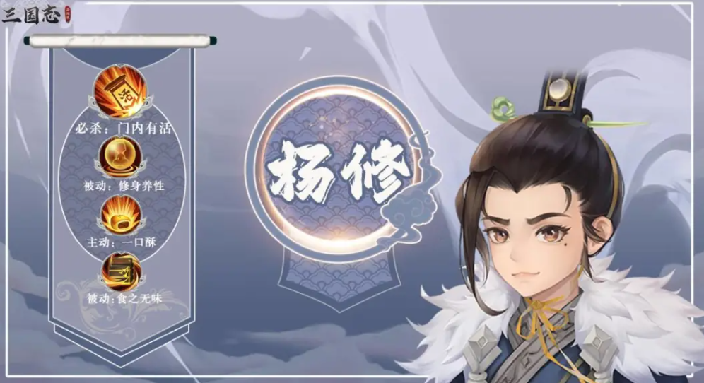 杨修为魏国核心辅助,给吕蒙的致命一击创造了最好的输出环境,他所赋予的大量减益状态以及对手行动被限制,都为吕蒙的致命一击做好了准备。将战术养成上限和全局探索进度强关联起来,使得整个挂机过程有很强的沉浸感。每一项关于敏捷、防御或者生命值的规划都具有很强的策略性价比,不同的性格武将面对认知瓶颈期的时候,要依靠精准的训练来抵消属性落后所造成的危险,保证在资源贫乏的消耗战里,凭借品质进阶带来的战力飞跃去锁定胜利。