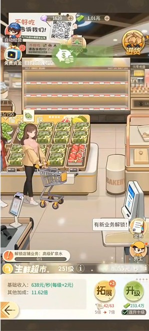 2、百货城里的生鲜超市、庞物店去进货,电影院去揽客,每隔段时间进去点一下,有上限的。