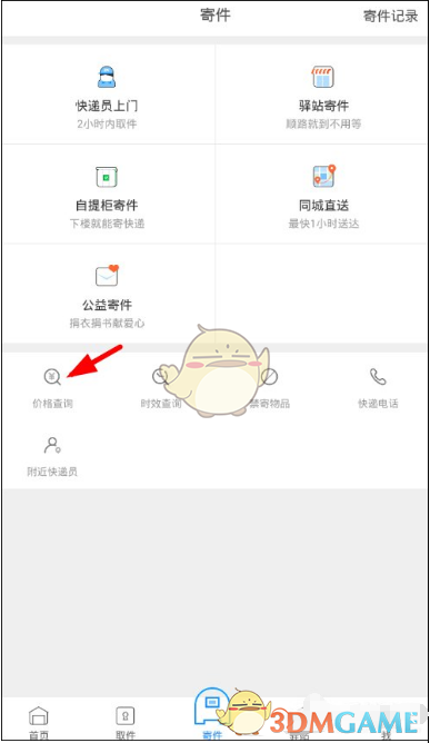 4、另外通过下方的“价格查询”功能,还能够轻松的查询寄件价格。