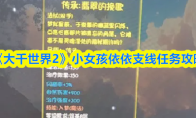 在《大千世界2》中,小女孩依依的支线任务充满温情与悬念。流程需在她家与教堂老头间多次往返对话,借助宾馆休息推进。关键步骤需在依依房间触发机关,最终揭示一段隐藏的剧情,值得玩家耐心探