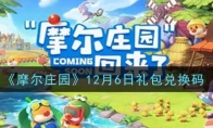 《摩尔庄园》手游公测后,官方会时不时给玩家发放一些兑换码用来兑换奖励,想必有很多小伙伴不太清楚《摩尔庄园》12月6日礼包兑换码是什么,怎么领,下面小编给大家带来《摩尔庄园》12月6