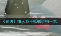 《光遇》游戏中情人节千纸鹤是纸船的新皮肤,情人节限定,5根蜡烛可以兑换2个。那么今天小编就给大家介绍一下光遇情人节千纸鹤价格一览,有需要的小伙伴不要错过了。 《光遇》情人节千纸鹤价