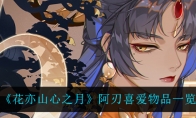 在花亦山心之月中玩家赠送角色喜爱道具会提升角色的好感度,很多小伙伴都很想知道阿刃喜欢的物品是什么,今天小编给大家带来了《花亦山心之月》阿刃喜爱物品一览。感兴趣的小伙伴一起来看看吧,