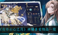 在花亦山心之月中玩家赠送角色喜爱道具会提升角色的好感度,很多小伙伴都很想知道林珊喜欢的物品是什么,今天小编给大家带来了《花亦山心之月》林珊喜爱物品一览。感兴趣的小伙伴一起来看看吧,