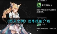 在悠久之树游戏中很多玩家还不清楚,角色莲华的技能是什么。接下来就让小编给大家带来《悠久之树》莲华技能介绍,感兴趣的小伙伴们一起来看看吧,希望可以帮助到大家。 《悠久之树》莲华技能介