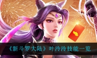 新斗罗大陆最近上线了全新魂师叶泠泠。很多小伙伴都很想知道叶泠泠的技能是什么,今天小编给大家带来了《新斗罗大陆》叶泠泠技能一览。感兴趣的小伙伴一起来看看吧,希望可以帮助到大家。《新斗