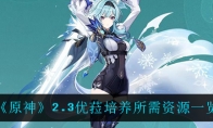原神在2.3版本上线了优菈卡池。很多小伙伴都很想知道培养优菈都需要什么材料,今天小编给大家带来了《原神》2.3优菈培养所需资源一览。感兴趣的小伙伴一起来看看吧,希望可以帮助到大家。