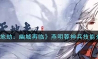 《天地劫:幽城再临》手游中的燕明蓉是一名非常不错的角色,小伙伴们知道燕明蓉神兵技能是什么吗?下面小编给大家带来《天地劫:幽城再临》燕明蓉神兵技能介绍,感兴趣的小伙伴们一起来看看吧。