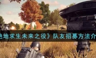 《绝地求生未来之役》游戏中玩家可以通过招募队友来增加队伍人数,相信还有很多小伙伴不是很清楚怎么招募队友,下面小编给大家带来《绝地求生未来之役》队友招募方法介绍,感兴趣的小伙伴们一起