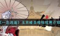 一念逍遥游戏中的玉京峰西的修炼效果非常的不错,相信还有很多小伙伴不是很清楚玉京峰西修炼效果怎么样。接下来就让小编给大家带来《一念逍遥》玉京峰西修炼效果介绍,感兴趣的小伙伴一起来看看