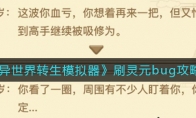 《异世界转生模拟器》游戏中很多玩家不会刷灵元,那么今天小编就给大家介绍一下异世界转生模拟器刷灵元bug攻略,有需要的小伙伴不要错过了。 《异世界转生模拟器》刷灵元bug攻略发现一个