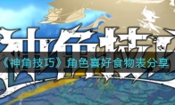 《神角技巧》游戏中玩家们需要给角色赠送他们喜欢的食物,那么都有什么呢?今天小编就给大家介绍一下神角技巧角色喜好食物表分享,有需要的小伙伴不要错过了。 《神角技巧》角色喜好食物表分享