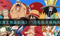 《航海王热血航线》游戏官方会时不时的发放一些礼包兑换码供玩家兑换福利,今天发放的是11月礼包兑换码,小伙伴都知道补给包礼包兑换码是什么吗?今天小编就给大家介绍一下航海王热血航线最新