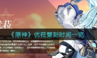 《原神》游戏中优菈可能在2.5版本【2022年3月9日】复刻,那么今天小编就给大家介绍一下原神优菈复刻时间一览,有需要的小伙伴不要错过了。 《原神》优菈复刻时间一览 优菈首次UP的