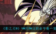 影之刃3在10月28日对大量职业进行了调整,很多小伙伴都很想知道都有哪些职业进行了调整,今天小编给大家带来了《影之刃3》10月28日职业平衡一览,感兴趣的小伙伴一起来看看吧,希望可