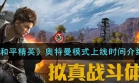 《和平精英》手游中的奥特曼模式是即将上线的新模式,相信还有很多小伙伴不是很清楚奥特曼模式什么时候上线,下面是3DM小编给大家带来的和平精英奥特曼模式上线时间介绍,感兴趣的小伙伴们一