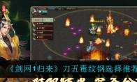 在剑网1归来中有很多小伙伴都很想知道游戏中的刀五毒纹钢应该怎么选,今天小编给大家带来了《剑网1归来》刀五毒纹钢选择推荐,感兴趣的小伙伴一起来看看吧,希望可以帮助到大家。 《剑网1归