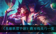 在英雄联盟手游中有很多小伙伴都很想知道游戏中的霞应该怎么对线,今天小编给大家带来了《英雄联盟手游》霞对线技巧一览,感兴趣的小伙伴一起来看看吧,希望可以帮助到大家。《英雄联盟手游》霞