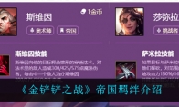 金铲铲之战最近在官网上爆料了双城传说赛季的全新羁绊英雄,今天小编给大家带来了《金铲铲之战》帝国羁绊介绍,对帝国羁绊不是很了解的小伙伴一起来看看吧,希望可以帮助到大家。《金铲铲之战》
