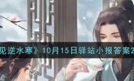 在《遇见逆水寒》手游中2021年10月15日最新四个线索答案是什么呢?驿站小报的玩法是大家很熟悉的的玩法之一了,大家需要根据每天给出的线索来找出正确的答案!下面是3DM小编给大家带