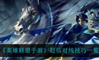 在英雄联盟手游中有很多小伙伴都很想知道游戏中的赵信应该怎么对线,今天小编给大家带来了《英雄联盟手游》赵信对线技巧一览,感兴趣的小伙伴一起来看看吧,希望可以帮助到大家。《英雄联盟手游