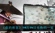 官方会不定期为大家发放一些兑换码供大家兑换奖励,来增加大家的游戏体验,那么今天10月14日的兑换码是什么呢?今天小编给大家带来了《我的侠客》10月14日兑换码一览,感兴趣的小伙伴一