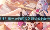 原神游戏中的周年20问是新上线的网页答题活动,相信还有很多小伙伴不是很清楚周年20问网页答题活动怎么参加。接下来小编就给大家介绍一下原神周年20问网页答题活动地址分享,感兴趣的小伙