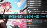 《少前:云图计划》游戏中战略科技加点顺序十分关键,可能有些小伙伴不清楚,那么今天小编就给大家介绍一下少女前线云图计划战略科技顺序一览,有需要的小伙伴不要错过了。 《少前:云图计划》