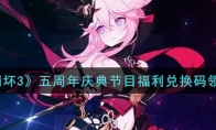 《崩坏3》手游不定时就会发放各种小礼包,通常是金币和体力药水!今日发放的是五周年庆典节目福利兑换码,该礼包在哪里领呢?下面是3DM小编给大家带来的《崩坏3》五周年庆典节目福利兑换码