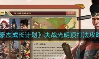 《豪杰成长计划》游戏中决战光明顶的流程比较复杂,很多小伙伴不清楚,那么今天小编就给大家介绍一下豪杰成长计划决战光明顶打法攻略,有需要的小伙伴不要错过了。 《豪杰成长计划》决战光明顶