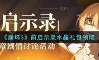 《崩坏3》手游不定时就会发放各种小礼包,通常是金币和体力药水!今日发放的是前启示录水晶礼包,该礼包在哪里领呢?下面是3DM小编给大家带来的《崩坏3》前启示录水晶礼包领取地址介绍,想
