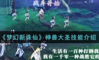 《梦幻新诛仙》手游中的神兽大圣是新上线的一位神兽,相信还有很多小伙伴不太清楚神兽大圣怎么样,下面小编给大家带来《梦幻新诛仙》神兽大圣技能介绍,感兴趣的小伙伴们一起来看看吧。 神兽大