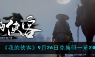 我的侠客9月26日兑换码是什么?在我的侠客游戏中会时不时的更新一些兑换码供玩家们换取福利,那么今天的兑换码是什么呢,今天小编给大家带来了《我的侠客》2021年9月26日兑换码一览,
