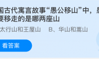 我国古代寓言故事“愚公移山”中,愚公想要移走的是哪两座山?这是支付宝蚂蚁庄园小鸡答题4月9日题目,支付宝小鸡答题是大家非常喜欢的活动,大家获取饲料就可以喂养小鸡领取更多的蛋去帮助更