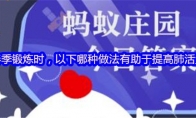 春季锻炼时,以下哪种做法有助于提高肺活量?这是支付宝蚂蚁庄园小鸡答题4月7日题目,选择正确答案,答对可获得 180g 饲料,答错则获得 30g 饲料。为了保证正确率,本次给大家带来