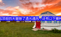 蒙古包顶部的天窗除了透光通风,还有以下哪种用途?这是支付宝蚂蚁庄园小鸡答题4月8日题目,选择正确答案,答对可获得 180g 饲料,答错则获得 30g 饲料。为了保证正确率,本次给大