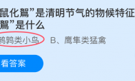 “田鼠化鴽”是清明节气的物候特征,猜猜“鴽”是什么?这是支付宝蚂蚁庄园小鸡答题4月4日题目,选择正确答案,答对可获得 180g 饲料,答错则获得 30g 饲料。为了保证正确率,本次