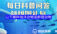 以下哪种海洋动物是群居动物?支付宝蚂蚁森林神奇海洋2025年4月3日问题已经更新,今日正确答案是:【沙丁鱼】。沙丁鱼个头较小,有群居的特性,喜欢在海洋中成群结队。>>&
