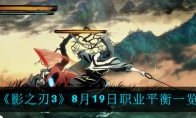 影之刃3在今天8月19日进行了版本更新,很多小伙伴都很想知道在本次版本更新中都对哪些职业进行了调整,今天小编给大家带来了《影之刃3》8月19日职业平衡一览,感兴趣的小伙伴一起来看看