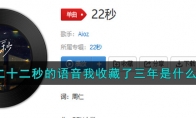 抖音“你二十二秒的语音我收藏了三年”是什么歌?最近抖音上好多人用这首歌做背景音乐,小伙伴们是否听过这首歌呢?你们是不是也在疑惑这到底是什么歌呢?今天小编就给大家带来抖音你二十二秒的
