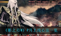 在影之刃3中没周都会对心法up池进行轮换,很多小伙伴都很想知道在7月都会上线什么心法,今天小编给大家带来了《影之刃3》7月上线心法一览,感兴趣的小伙伴一起来看看吧,希望可以帮助到大