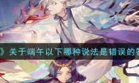 《阴阳师》游戏中的端午节答题活动中有一道题是【关于端午以下哪种说法是错误的】,相信还有很多小伙伴不是很清楚关于端午以下哪种说法是错误的答案是什么。下面小编给大家带来了《阴阳师》关于