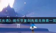 光遇游戏中的端午节复刻先祖即将上线了,相信还有很多小伙伴想知道端午节复刻先祖兑换表是什么。下面小编给大家带来了光遇端午节复刻先祖兑换表一览,感兴趣的小伙伴们一起来看看吧。端午节复刻