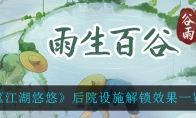在江湖悠悠中我们可以解锁后院设施获得对应的资源,很多小伙伴都很好奇每个设施都会给玩家提供什么资源,今天小编给大家带来了《江湖悠悠》后院设施解锁效果一览,感兴趣的小伙伴一起来看看吧,
