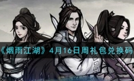 《烟雨江湖》手游不定时会更新些小礼包,4月16日周礼包兑换码是什么,在哪里兑换领取呢?下面给大家带来的是《烟雨江湖》4月16日周礼包兑换码及领取地址介绍,想要领取福利的小伙伴们速来