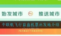 中联航飞行盲盒在今天正式发售,很多小伙伴都很想知道本次飞行盲盒的出发地都有哪些城市,今天小编给大家带来了中联航飞行盲盒机票出发地介绍,感兴趣的小伙伴一起来看看吧,希望可以帮助到大家
