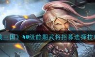 战三国40级前期武将招募怎么选择?很多小伙伴对于前期的武将招募不太清楚,那么小编就给大家介绍一下,下面小编给大家带来《战三国》40级前期武将招募选择技巧,还不清楚的小伙伴赶紧来看看