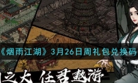 《烟雨江湖》手游不定时会更新些小礼包,3月26日周礼包兑换码是什么,在哪里兑换领取呢?下面给大家带来的是《烟雨江湖》3月26日周礼包兑换码及领取地址介绍,想要领取福利的小伙伴们速来